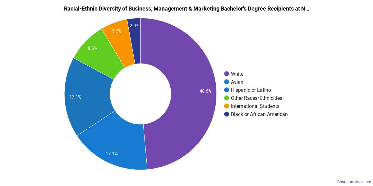 About 69% of those who receive a bachelor's degree in business, management & marketing at Northwest University are white. This is above average for this degree on the nationwide level.