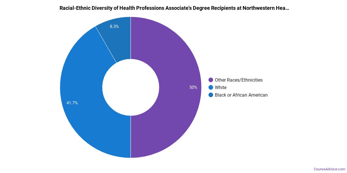 The following table and chart show the race/ethnicity for students who recently graduated from Northwestern Health Sciences University with a associate's in health professions.
