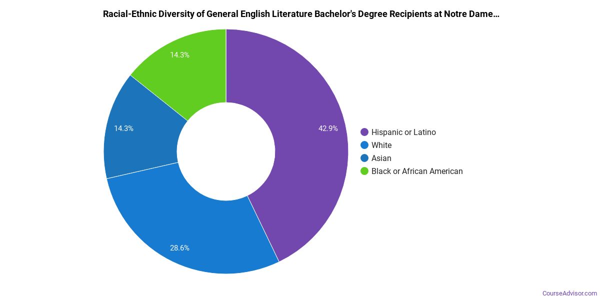 The following table and chart show the race/ethnicity for students who recently graduated from Notre Dame de Namur University with a bachelor's in English.