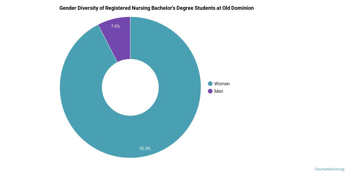 About 53% of those who receive a bachelor's degree in registered nursing at Old Dominion are white. This is typical for this degree on the nationwide level. Prospective students may be interested in knowing that this school graduates 4% more racial-ethnic minorities in its registered nursing bachelor's program than the national average.*