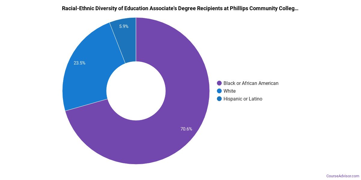 Phillips County Community College does a better job with serving racial-ethnic minorities than the typical school does. Its associate's program in education graduates 54% more racial-ethnic minorities than the nationwide average.*