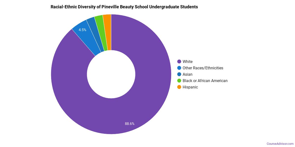 The racial-ethnic breakdown of Pineville Beauty School students is as follows.