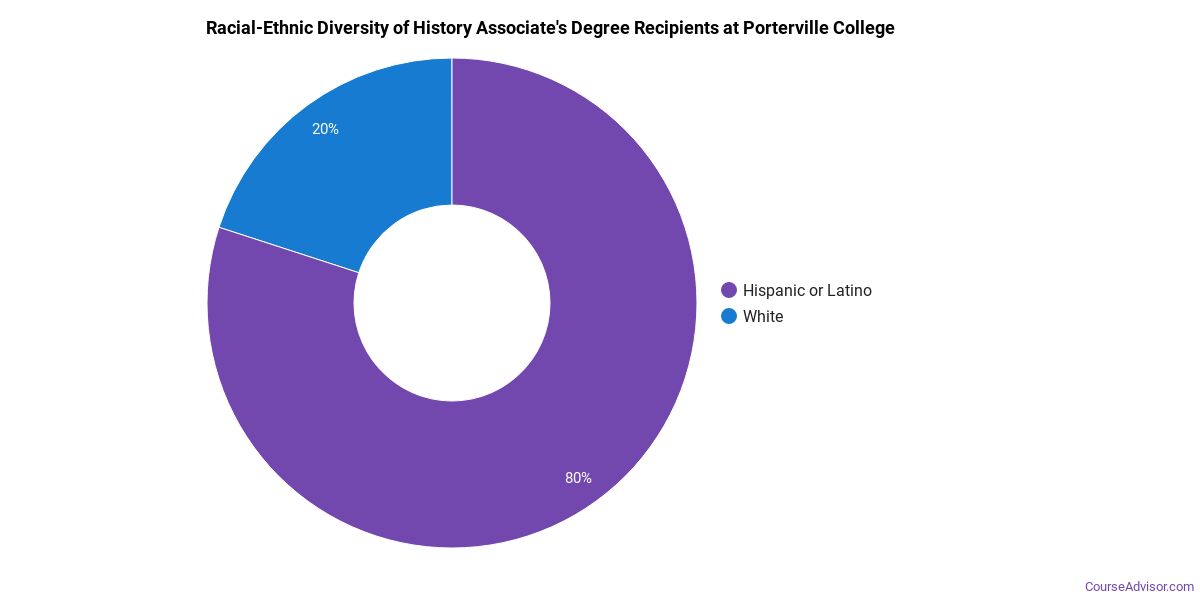 Porterville College does a better job with serving racial-ethnic minorities than the typical school does. Its associate's program in history graduates 51% more racial-ethnic minorities than the nationwide average.*