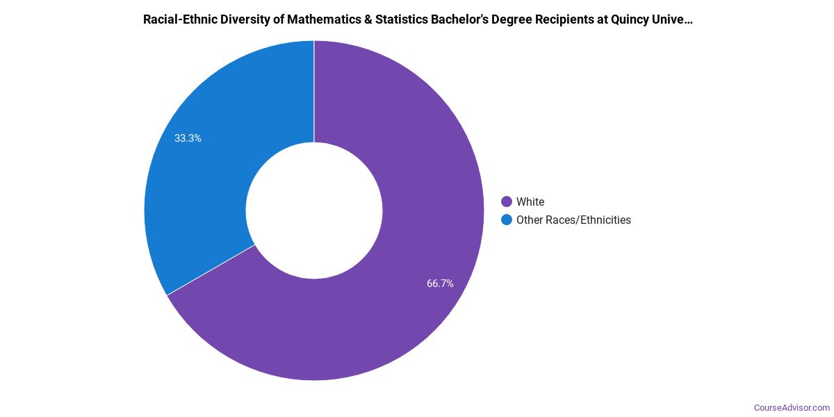 The following table and chart show the race/ethnicity for students who recently graduated from Quincy University with a bachelor's in mathematics & statistics.