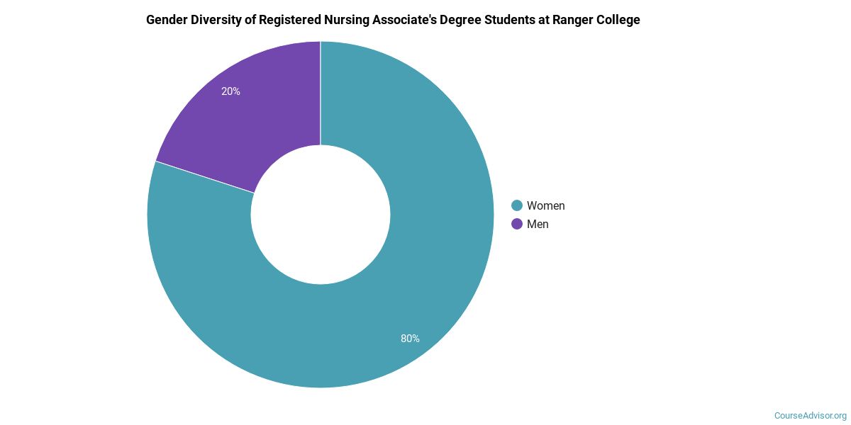 The majority of those who receive an associate's degree in registered nursing at Ranger College are white. Around 64% fell into this category, which is below average for this degree.