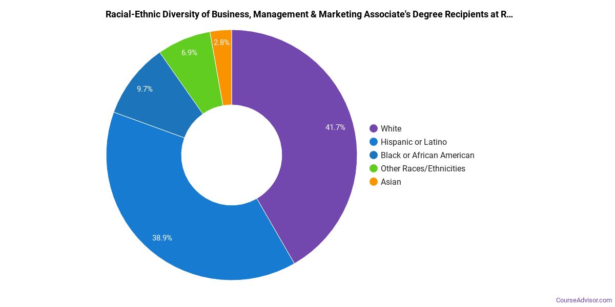 RACC does a better job with serving racial-ethnic minorities than the typical school does. Its associate's program in business, management & marketing graduates 15% more racial-ethnic minorities than the nationwide average.*