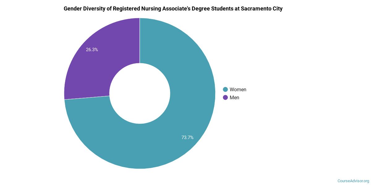 Sacramento City does a better job with serving racial-ethnic minorities than the typical school does. Its associate's program in registered nursing graduates 13% more racial-ethnic minorities than the nationwide average.*