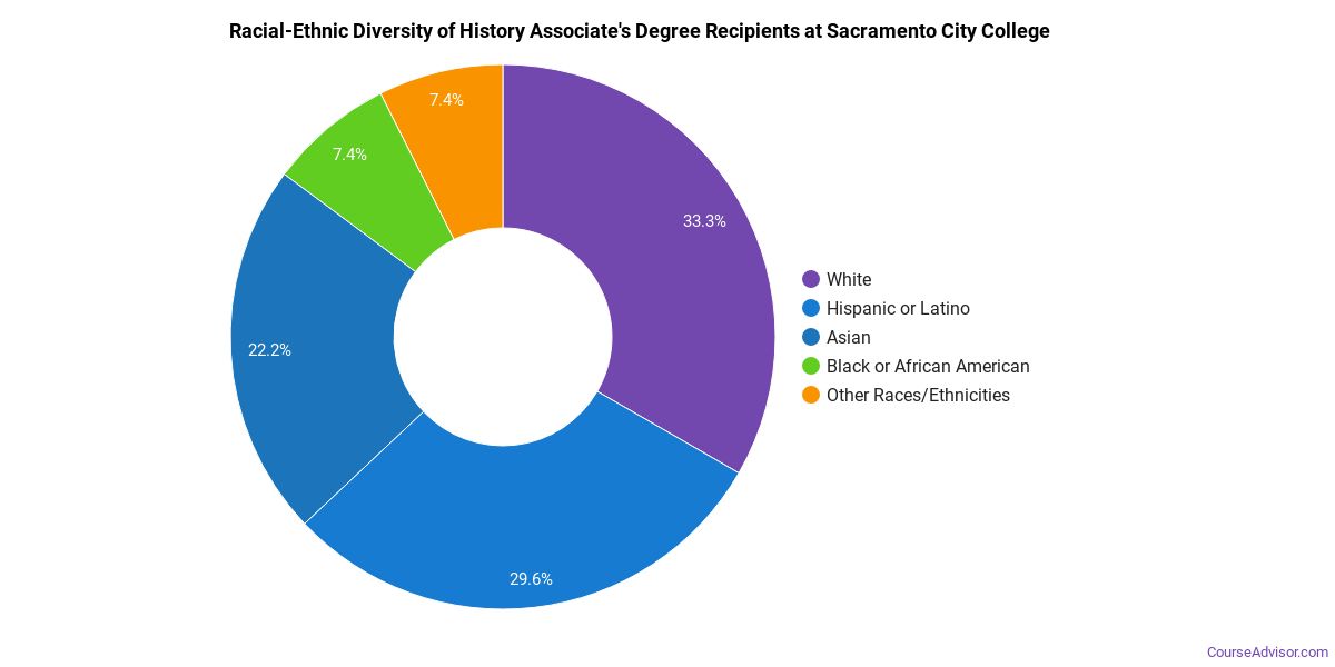Sacramento City does a better job with serving racial-ethnic minorities than the typical school does. Its associate's program in history graduates 27% more racial-ethnic minorities than the nationwide average.*
