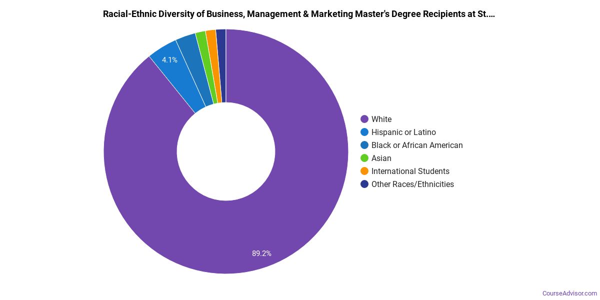 The following table and chart show the race/ethnicity for students who recently graduated from St. Bonaventure University with a master's in business, management & marketing.