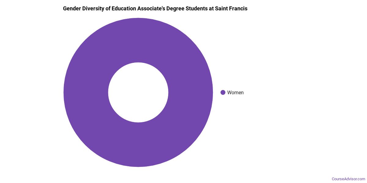 The majority of those who receive an associate's degree in education at Saint Francis are white. Around 55% fell into this category, which is below average for this degree.