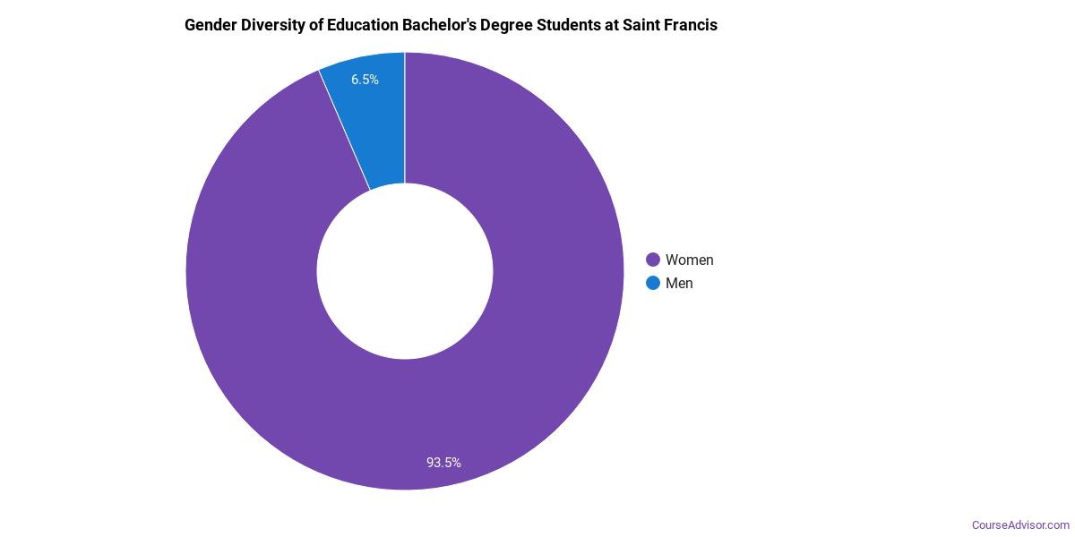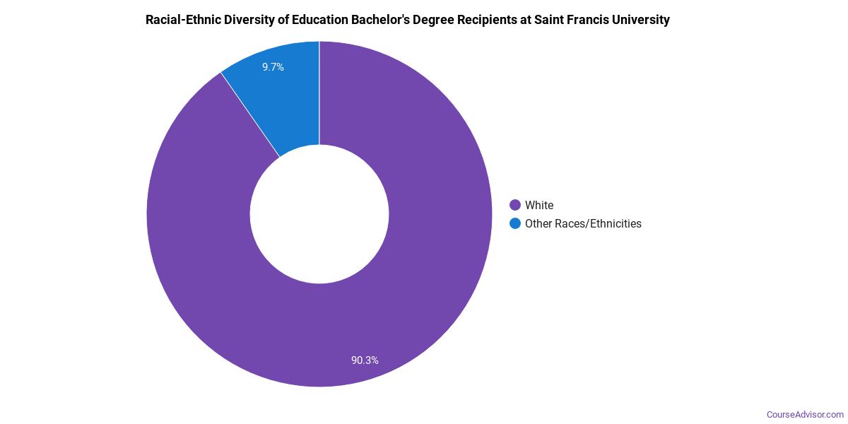 About 82% of those who receive a bachelor's degree in education at Saint Francis are white. This is above average for this degree on the nationwide level.