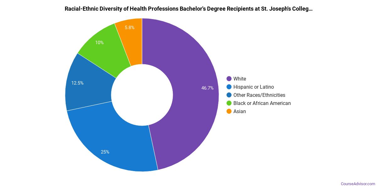 About 52% of those who receive a bachelor's degree in health professions at SJC are white. This is typical for this degree on the nationwide level.