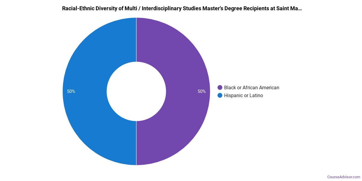 Of the students who received a multi / interdisciplinary studies master's degree from St. Mary's College, 89% were white. This is above average for this degree on the natiowide level.