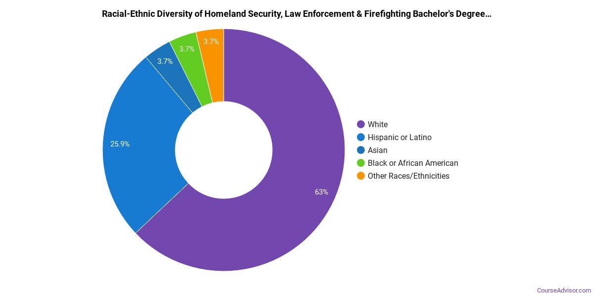 Prospective students may be interested in knowing that this school graduates 11% more racial-ethnic minorities in its homeland security, law enforcement & firefighting bachelor's program than the national average.*