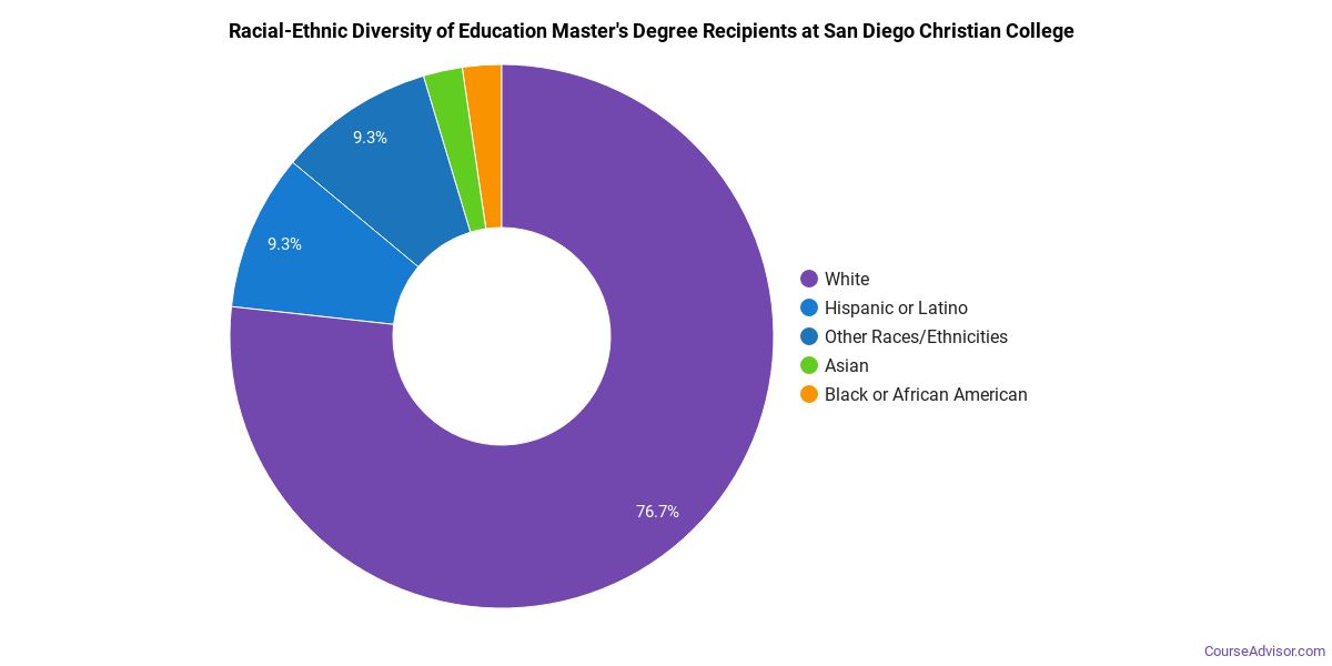The following table and chart show the race/ethnicity for students who recently graduated from San Diego Christian College with a master's in education.