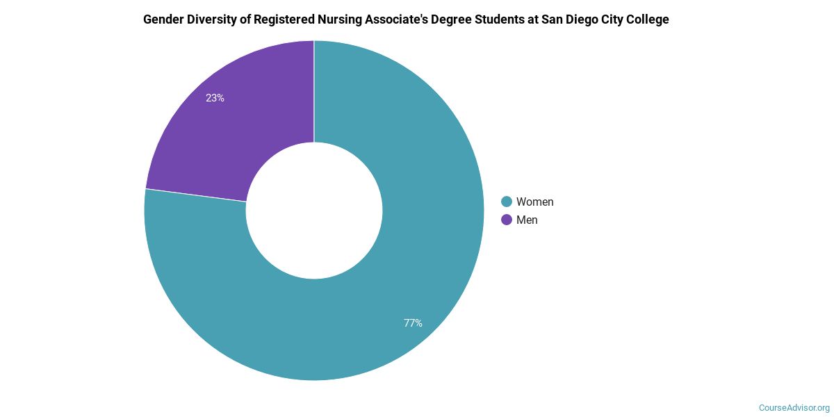 San Diego City College does a better job with serving racial-ethnic minorities than the typical school does. Its associate's program in registered nursing graduates 26% more racial-ethnic minorities than the nationwide average.*