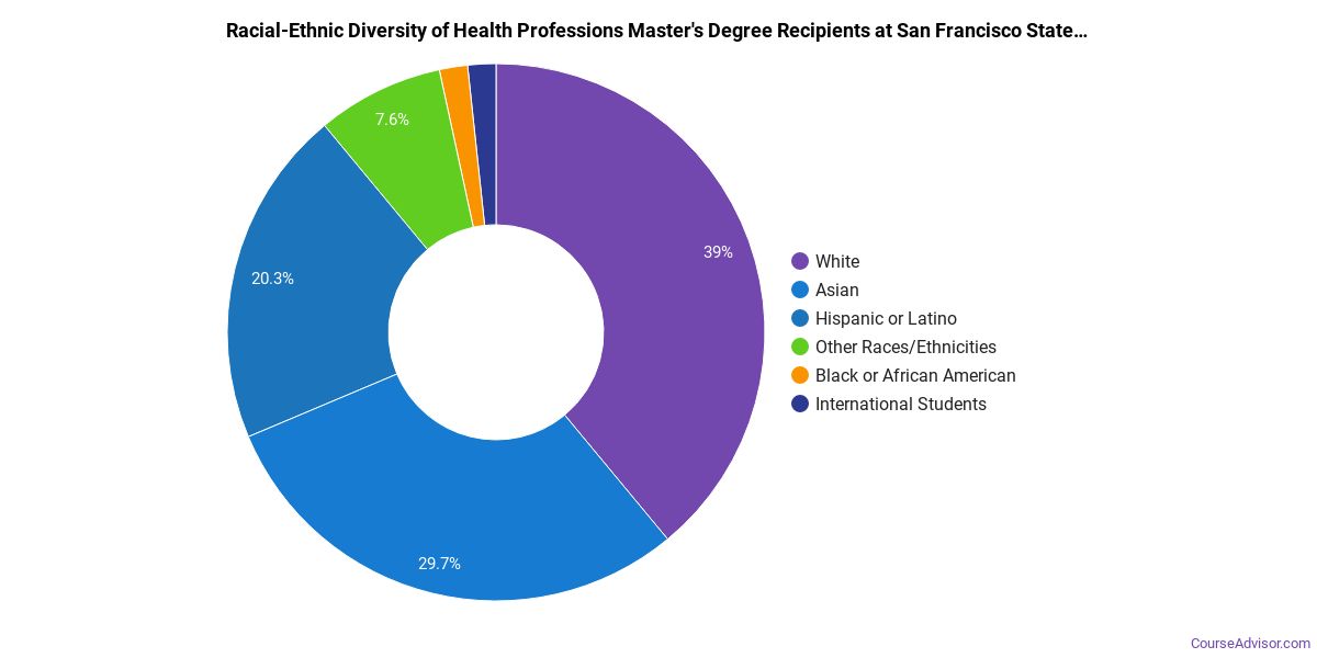 The following table and chart show the race/ethnicity for students who recently graduated from San Francisco State University with a master's in health professions.