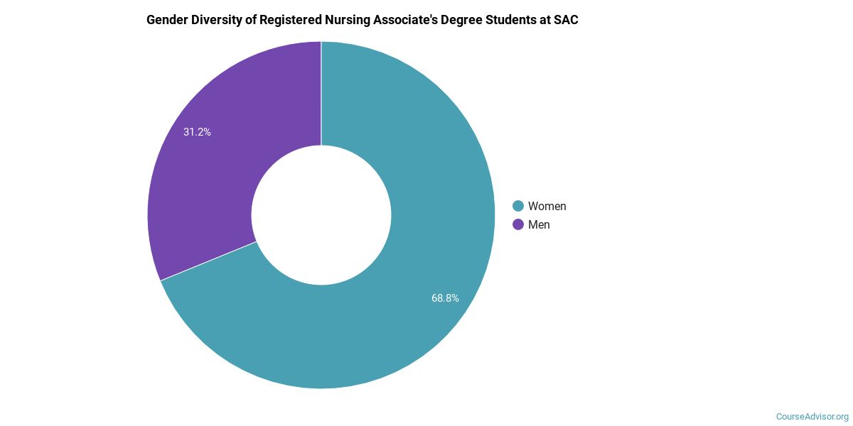 SAC does a better job with serving racial-ethnic minorities than the typical school does. Its associate's program in registered nursing graduates 45% more racial-ethnic minorities than the nationwide average.*