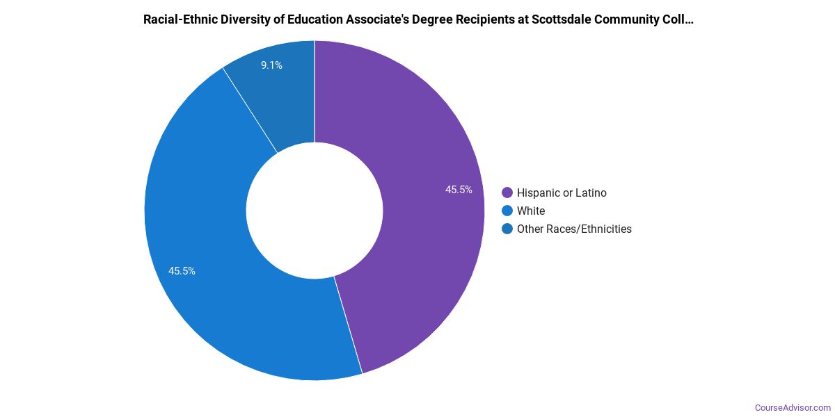 The majority of those who receive an associate's degree in education at Scottsdale Community College are white. Around 75% fell into this category, which is below average for this degree.
