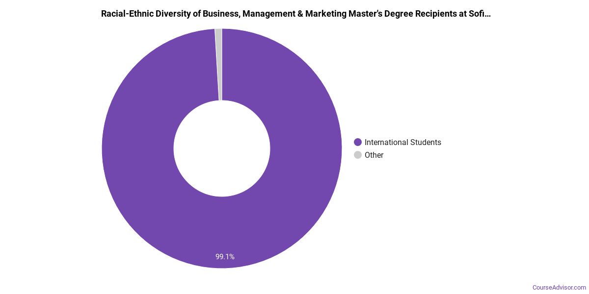 The following table and chart show the race/ethnicity for students who recently graduated from Sofia University with a master's in business, management & marketing.
