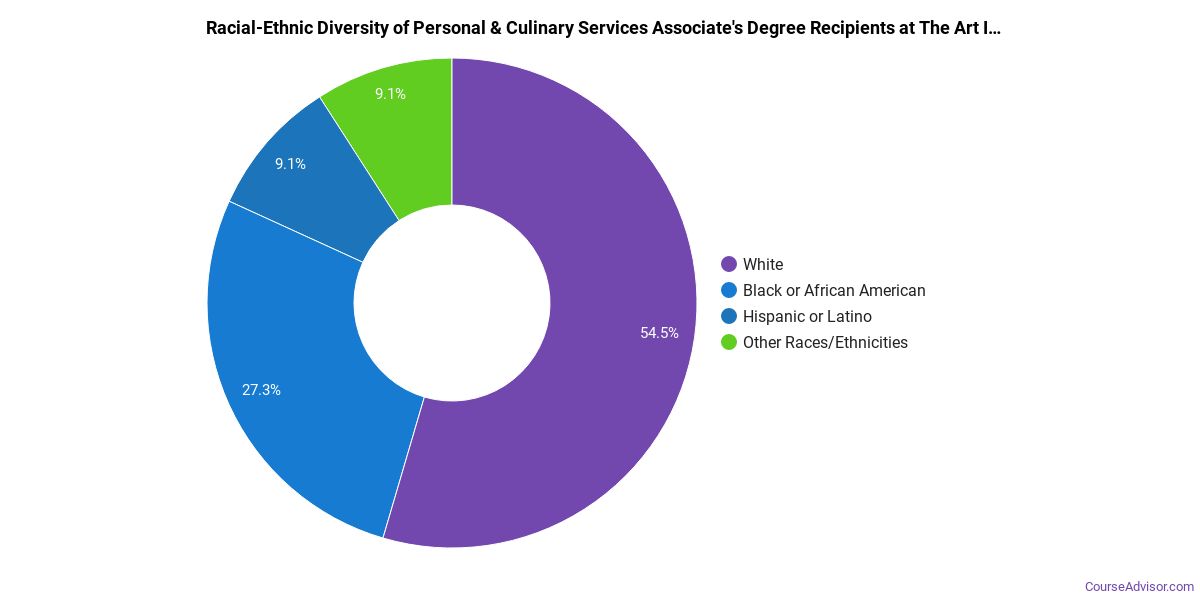 The majority of those who receive an associate's degree in personal and culinary services at The Art Institute of Dallas are white. Around 55% fell into this category, which is below average for this degree.