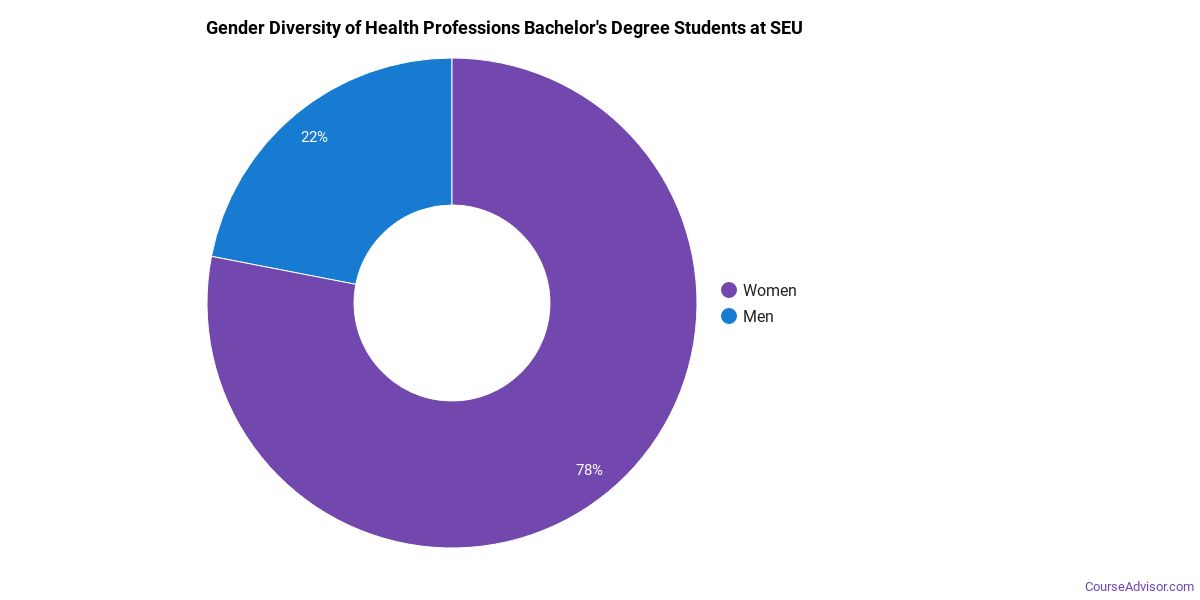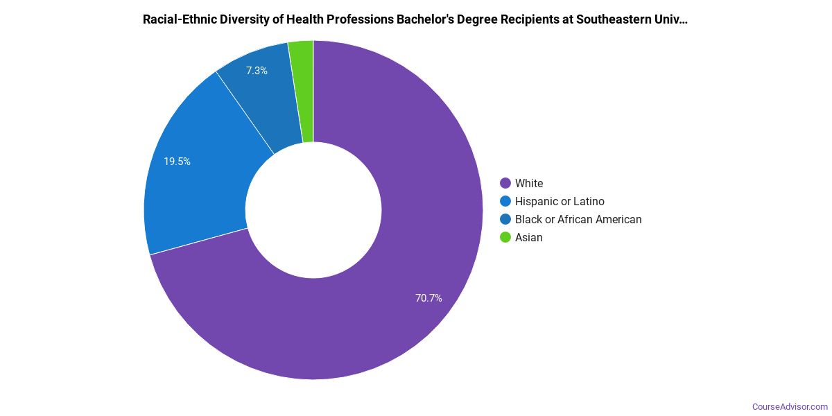 About 73% of those who receive a bachelor's degree in health professions at SEU are white. This is above average for this degree on the nationwide level.