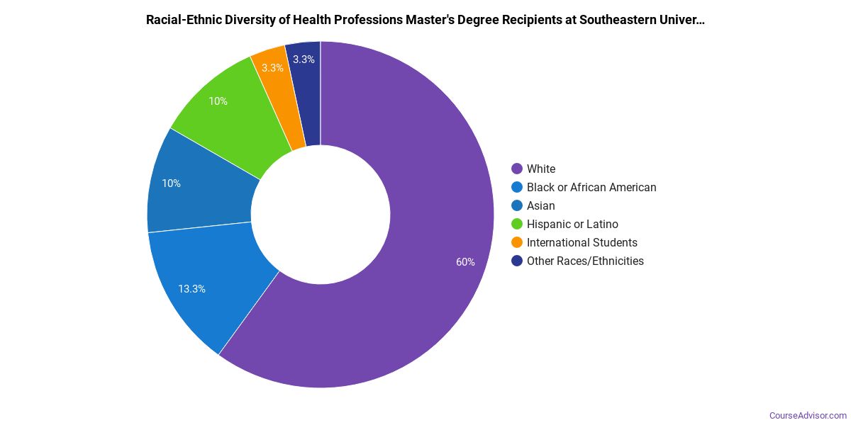 Of the students who received a health professions master's degree from SEU, 60% were white. This is above average for this degree on the natiowide level.