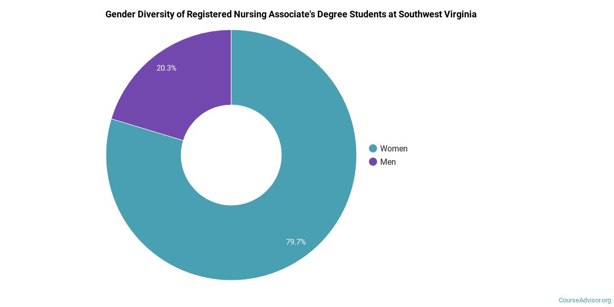 The majority of those who receive an associate's degree in registered nursing at Southwest Virginia are white. Around 91% fell into this category, which is below average for this degree.