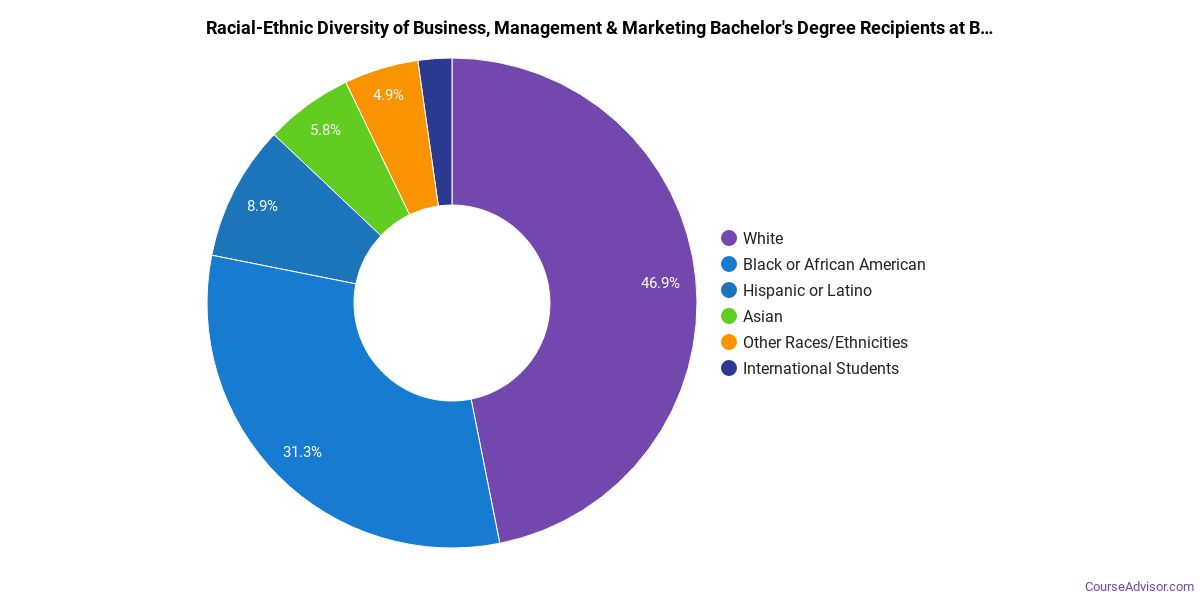 Prospective students may be interested in knowing that this school graduates 20% more racial-ethnic minorities in its business, management & marketing bachelor's program than the national average.*
