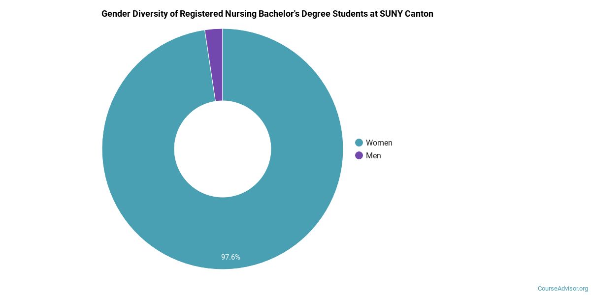 The majority of those who receive an associate's degree in registered nursing at SUNY Canton are white. Around 86% fell into this category, which is below average for this degree.