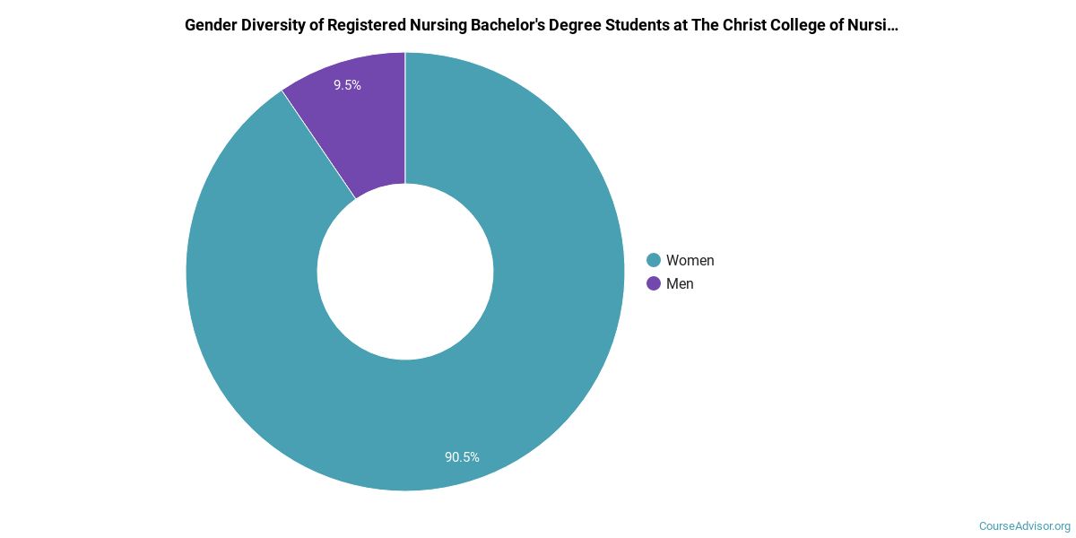 About 85% of those who receive a bachelor's degree in registered nursing at The Christ College are white. This is above average for this degree on the nationwide level.