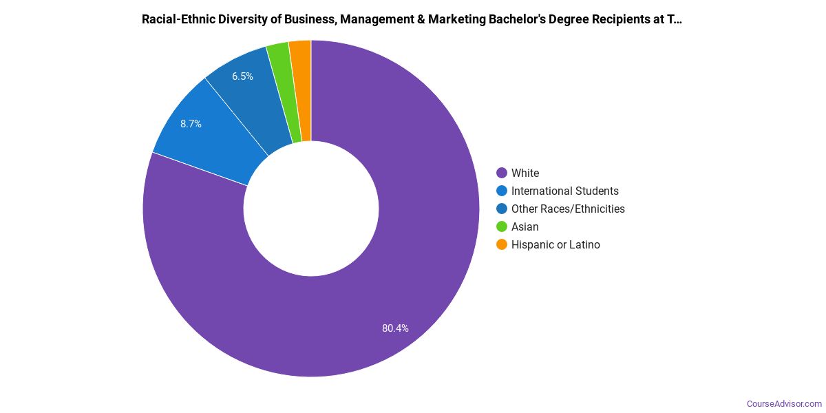 About 82% of those who receive a bachelor's degree in business, management & marketing at St. Scholastica are white. This is above average for this degree on the nationwide level.