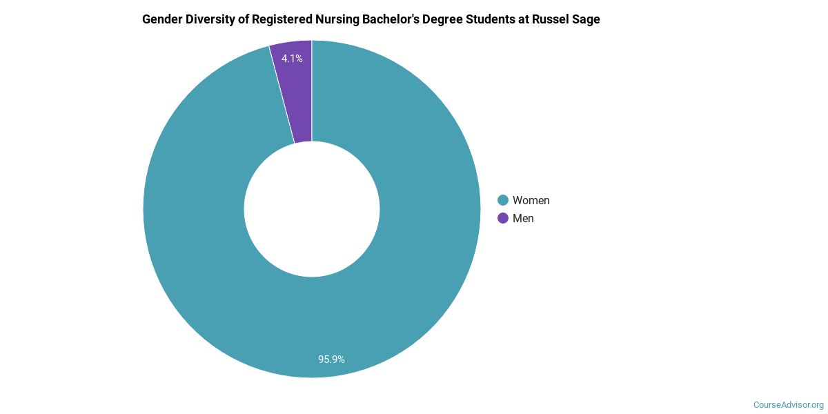 About 60% of those who receive a bachelor's degree in registered nursing at Russel Sage are white. This is above average for this degree on the nationwide level.