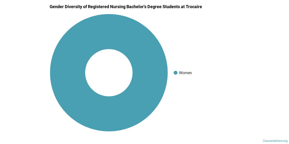 About 100% of those who receive a bachelor's degree in registered nursing at Trocaire are white. This is above average for this degree on the nationwide level.