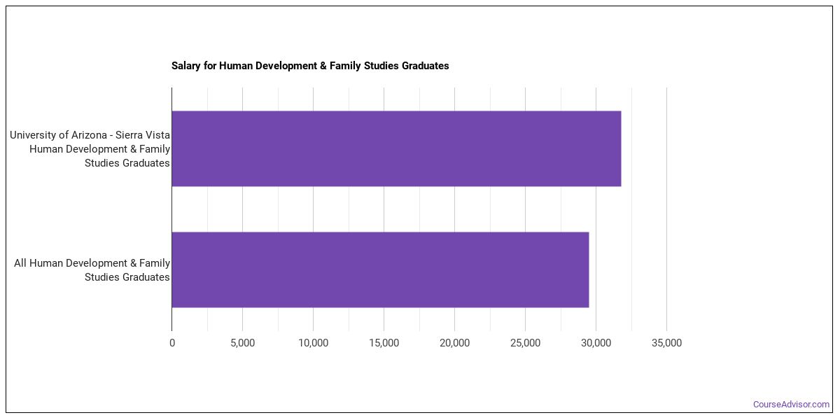 The median salary of human development students who receive their bachelor's degree at UA Sierra Vista is $31,769. This is great news for graduates of the program, since this figure is 8% higher than the national average of $29,494 for all human development bachelor's degree recipients.