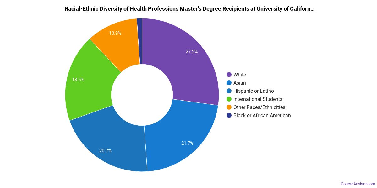 The following table and chart show the race/ethnicity for students who recently graduated from University of California - San Diego with a master's in health professions.