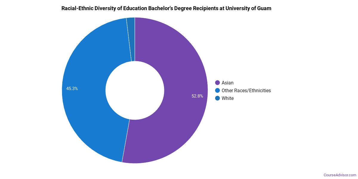 The following table and chart show the race/ethnicity for students who recently graduated from University of Guam with a bachelor's in education.