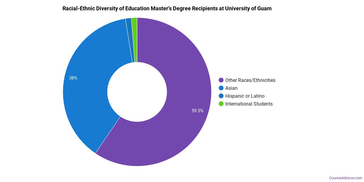 The following table and chart show the race/ethnicity for students who recently graduated from University of Guam with a master's in education.