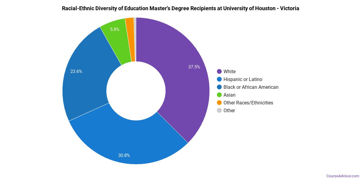 The following table and chart show the race/ethnicity for students who recently graduated from University of Houston - Victoria with a master's in education.