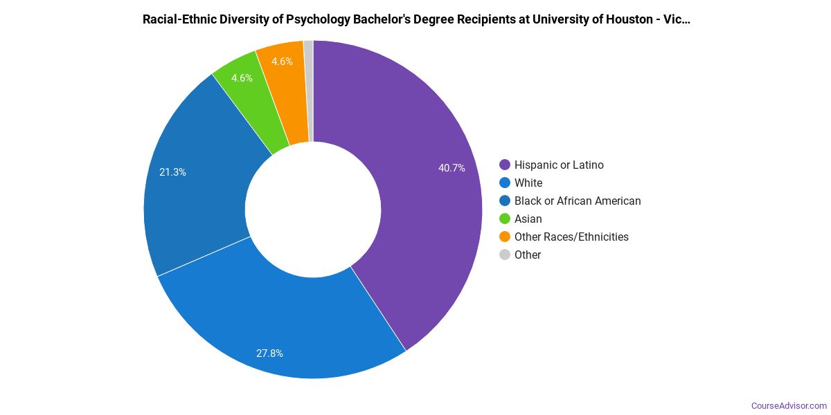 The following table and chart show the race/ethnicity for students who recently graduated from University of Houston - Victoria with a bachelor's in psychology.