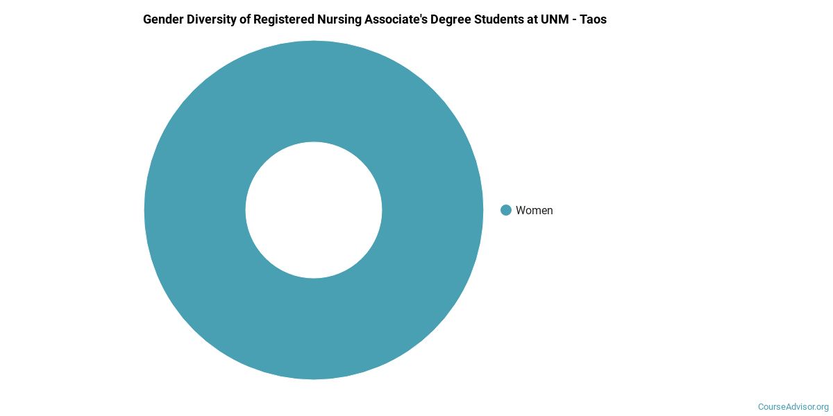 The majority of those who receive an associate's degree in registered nursing at UNM Taos are white. Around 67% fell into this category, which is below average for this degree.