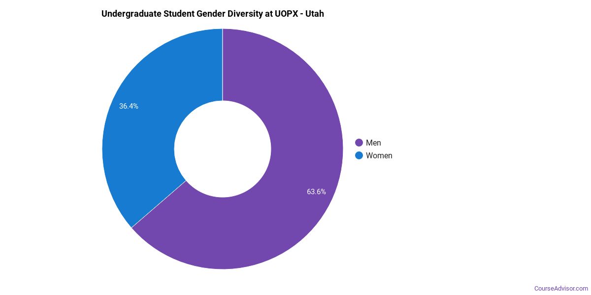 Of the 11 full-time undergraduates at UOPX - Utah, 64% are male and 36% are female.