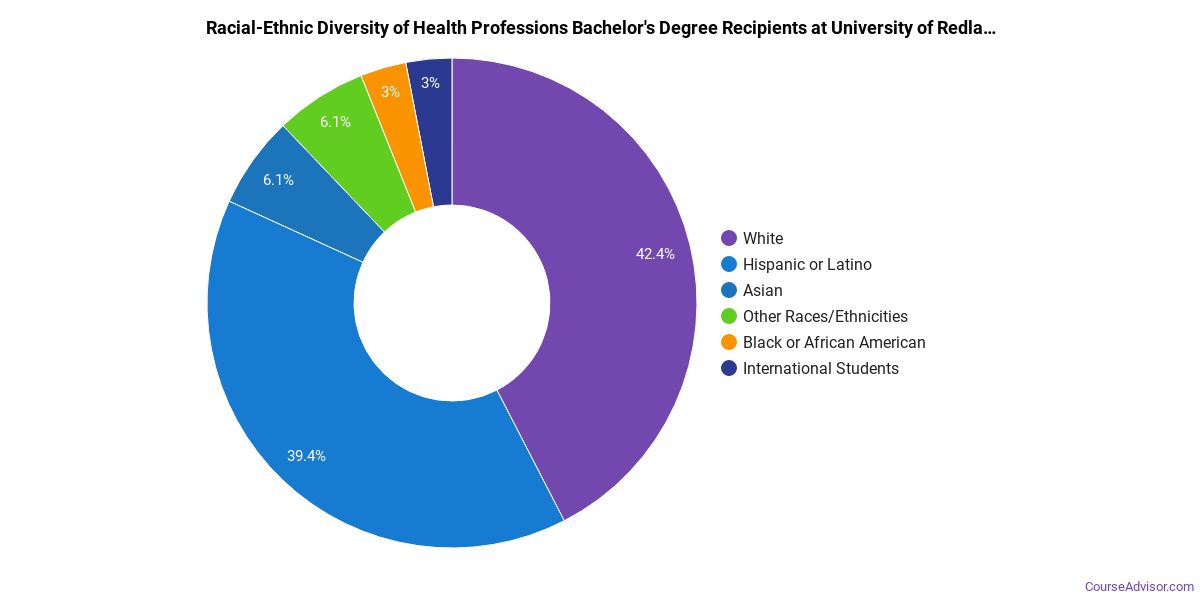 The following table and chart show the race/ethnicity for students who recently graduated from University of Redlands with a bachelor's in health professions.
