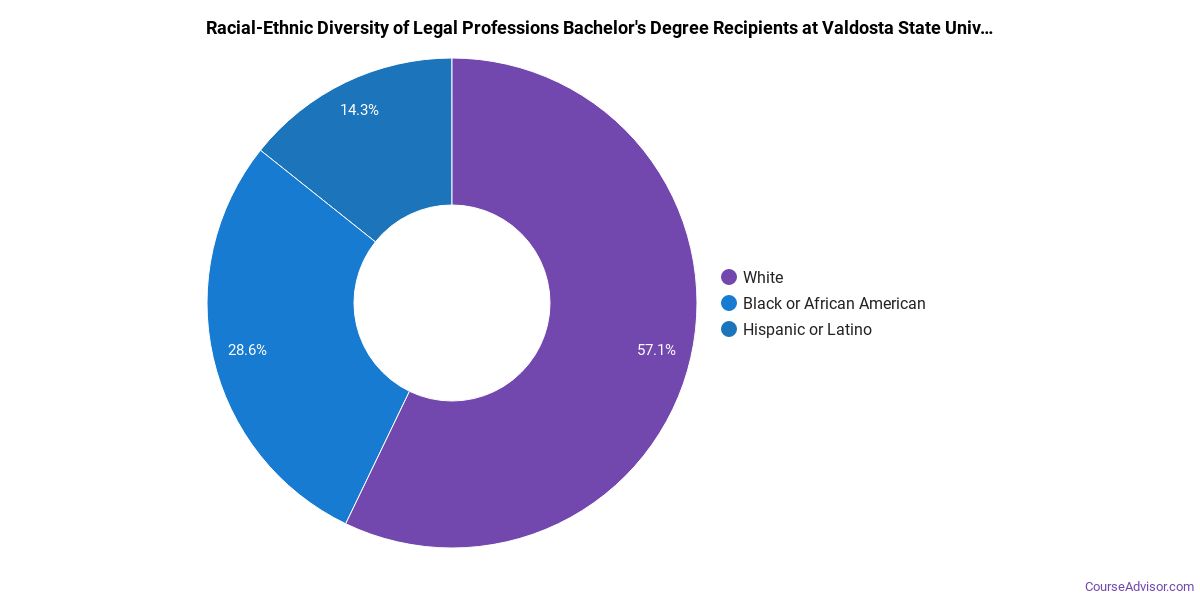 The following table and chart show the race/ethnicity for students who recently graduated from Valdosta State University with a bachelor's in legal professions.