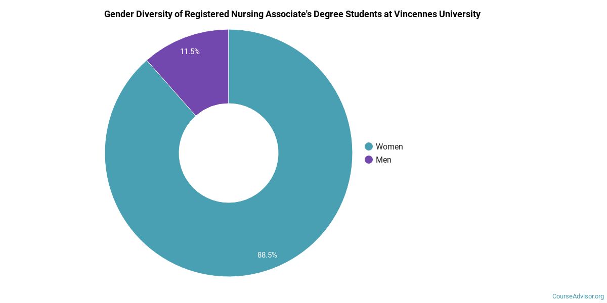 The majority of those who receive an associate's degree in registered nursing at Vincennes University are white. Around 81% fell into this category, which is below average for this degree.