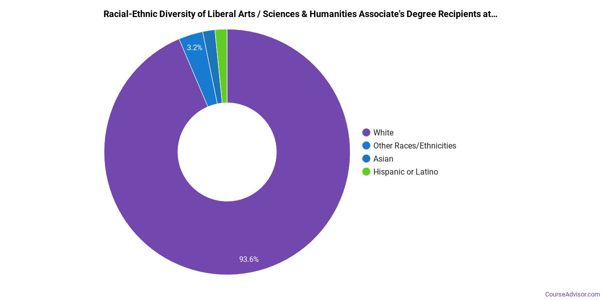 The majority of those who receive an associate's degree in liberal arts / sciences & humanities at VHCC are white. Around 90% fell into this category, which is below average for this degree.