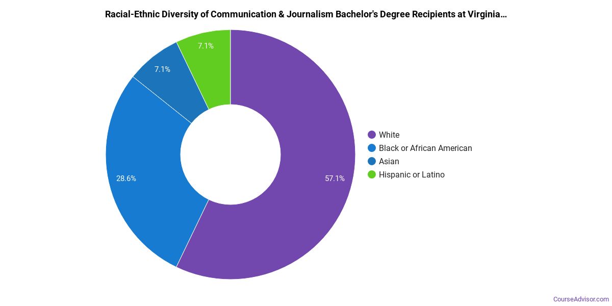 The following table and chart show the race/ethnicity for students who recently graduated from Virginia Wesleyan University with a bachelor's in communication & journalism.