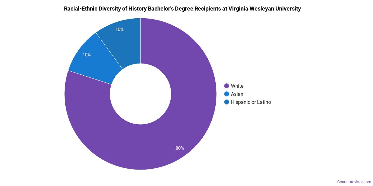 The following table and chart show the race/ethnicity for students who recently graduated from Virginia Wesleyan University with a bachelor's in history.