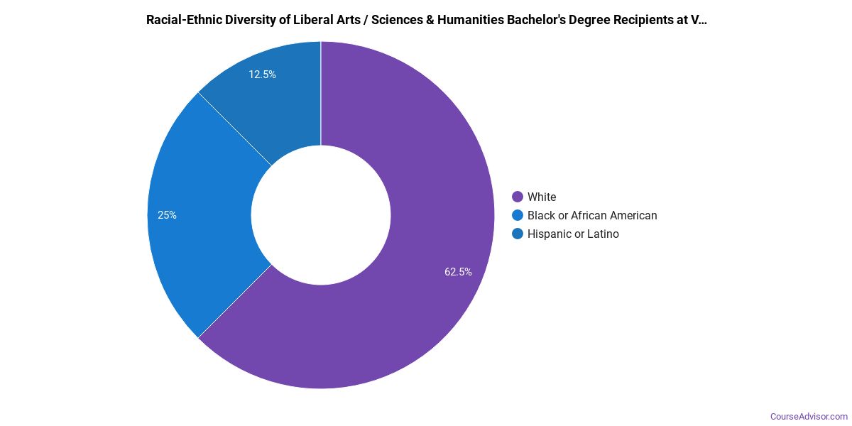 About 57% of those who receive a bachelor's degree in liberal arts / sciences & humanities at VWU are white. This is above average for this degree on the nationwide level.