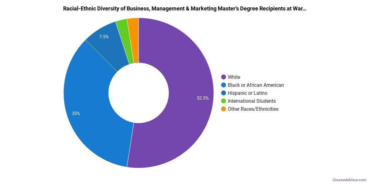 The following table and chart show the race/ethnicity for students who recently graduated from Warner University with a master's in business, management & marketing.